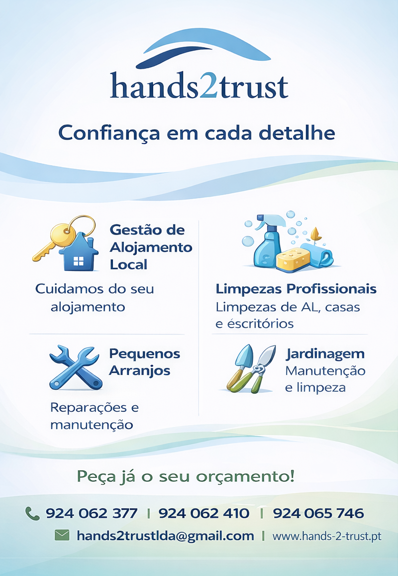 Somos a Hands 2 Trust, uma empresa dedicada a oferecer soluções completas de gestão de propriedades, limpeza e pequenos arranjos, com foco na confiança, qualidade e atenção aos detalhes.